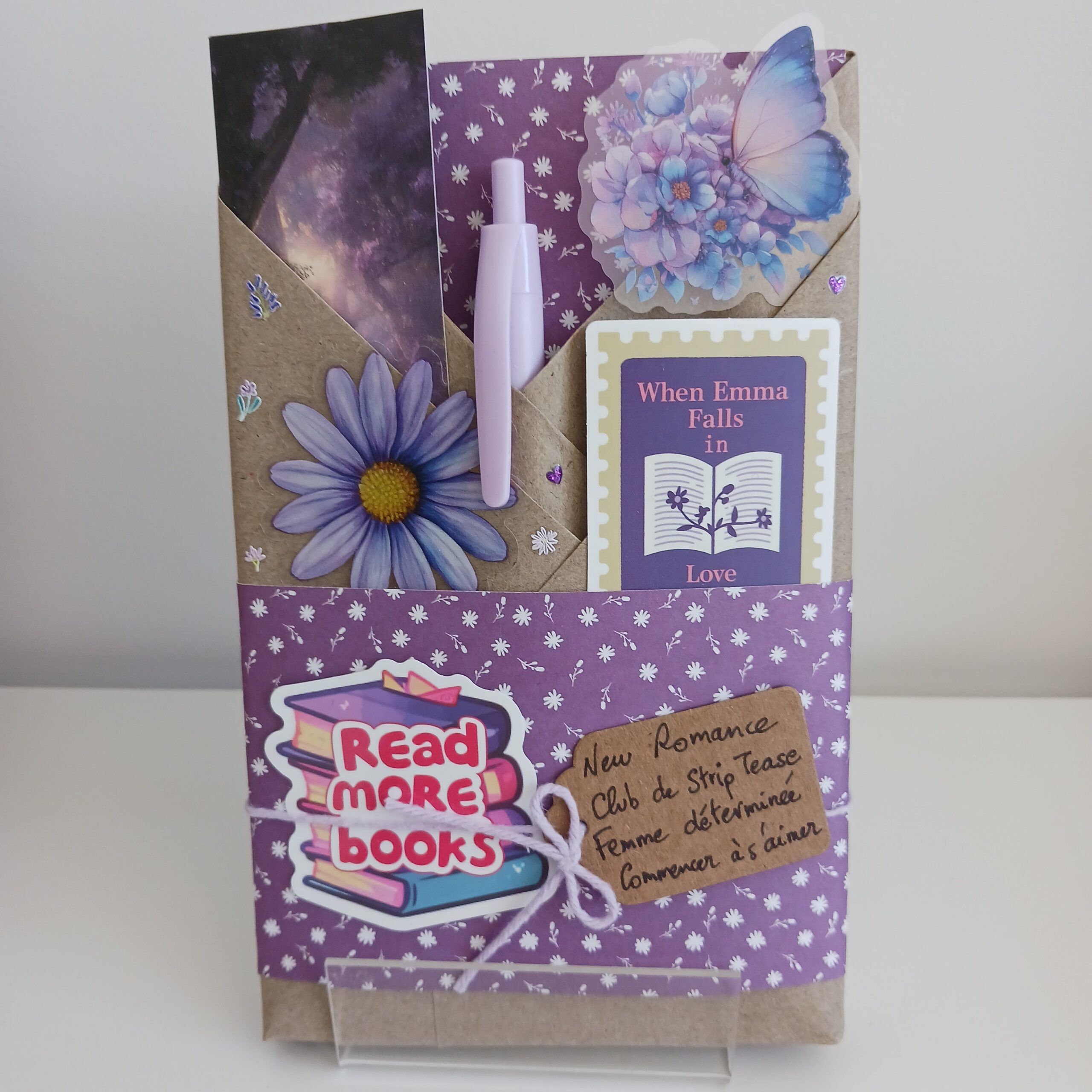 Box mystère : Un livre mystère format poche, son marque-page et ses accessoires livresques (stylo, crayon, surligneur, stickers, onglets adhésifs, carte… Variable selon la box)
