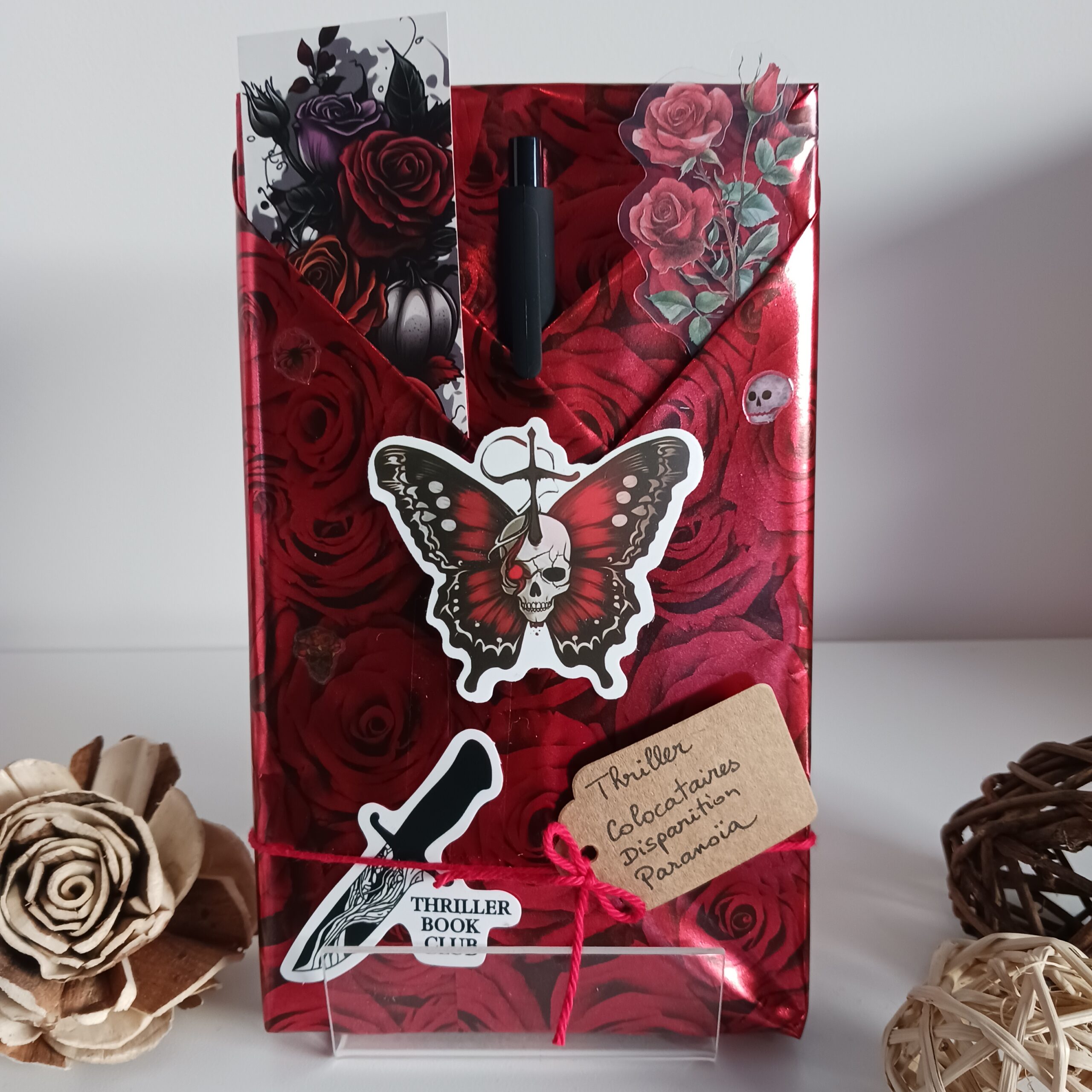 Box mystère : Un livre mystère format poche, son marque-page et ses accessoires livresques (stylo, crayon, surligneur, stickers, onglets adhésifs, carte… Variable selon la box)