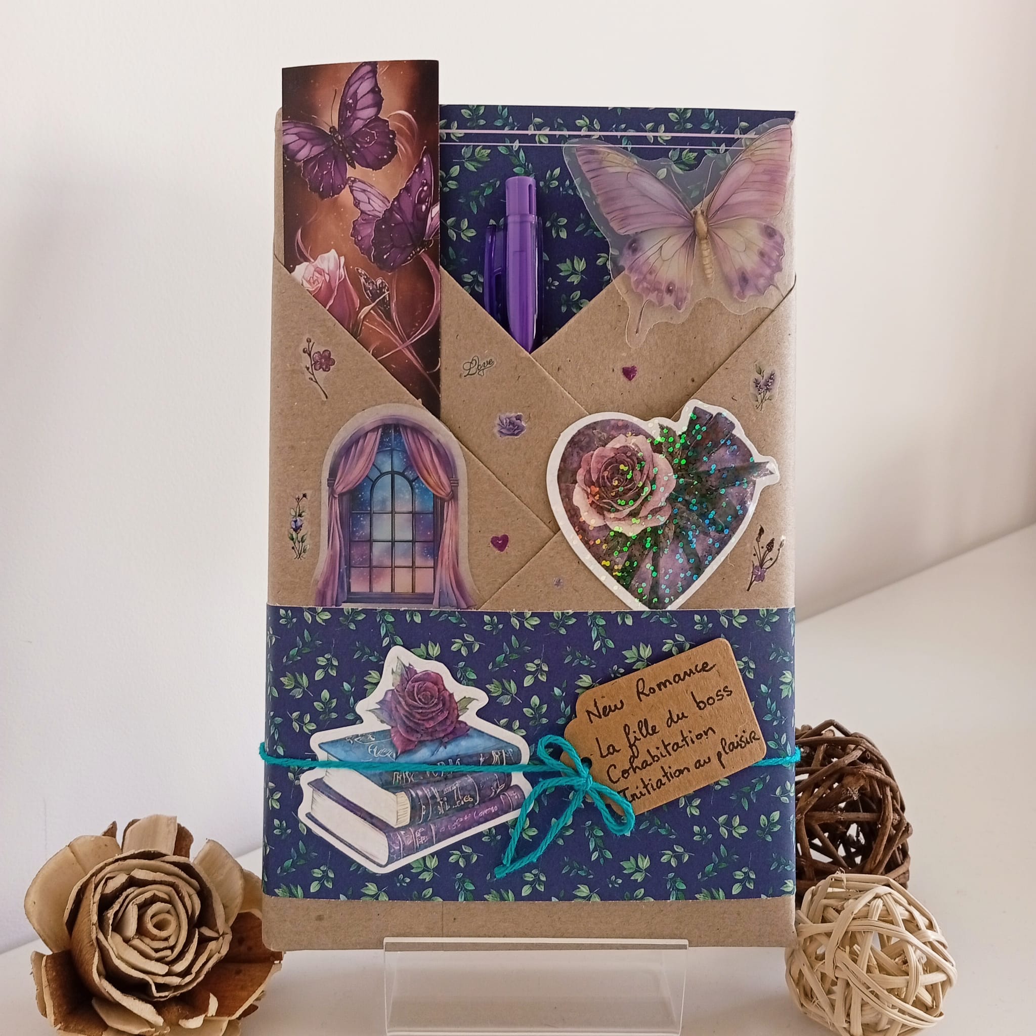 Un livre mystère format broché, son marque-page et ses accessoires livresques (stylo, crayon, surligneur, stickers, onglets adhésifs, carte… Variable selon la box)