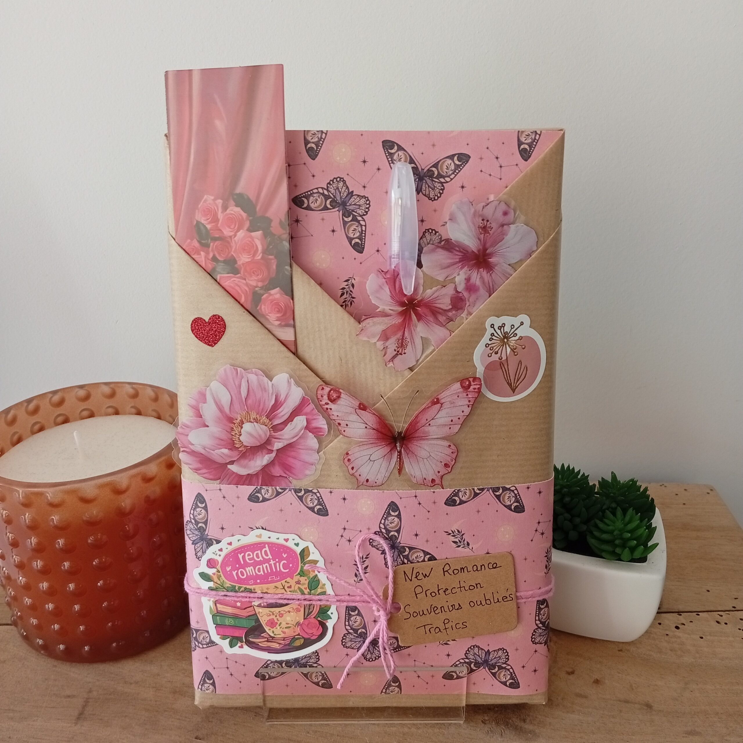 Un livre mystère format broché, son marque-page et ses accessoires livresques (stylo, crayon, surligneur, stickers, onglets adhésifs, carte… Variable selon la box)