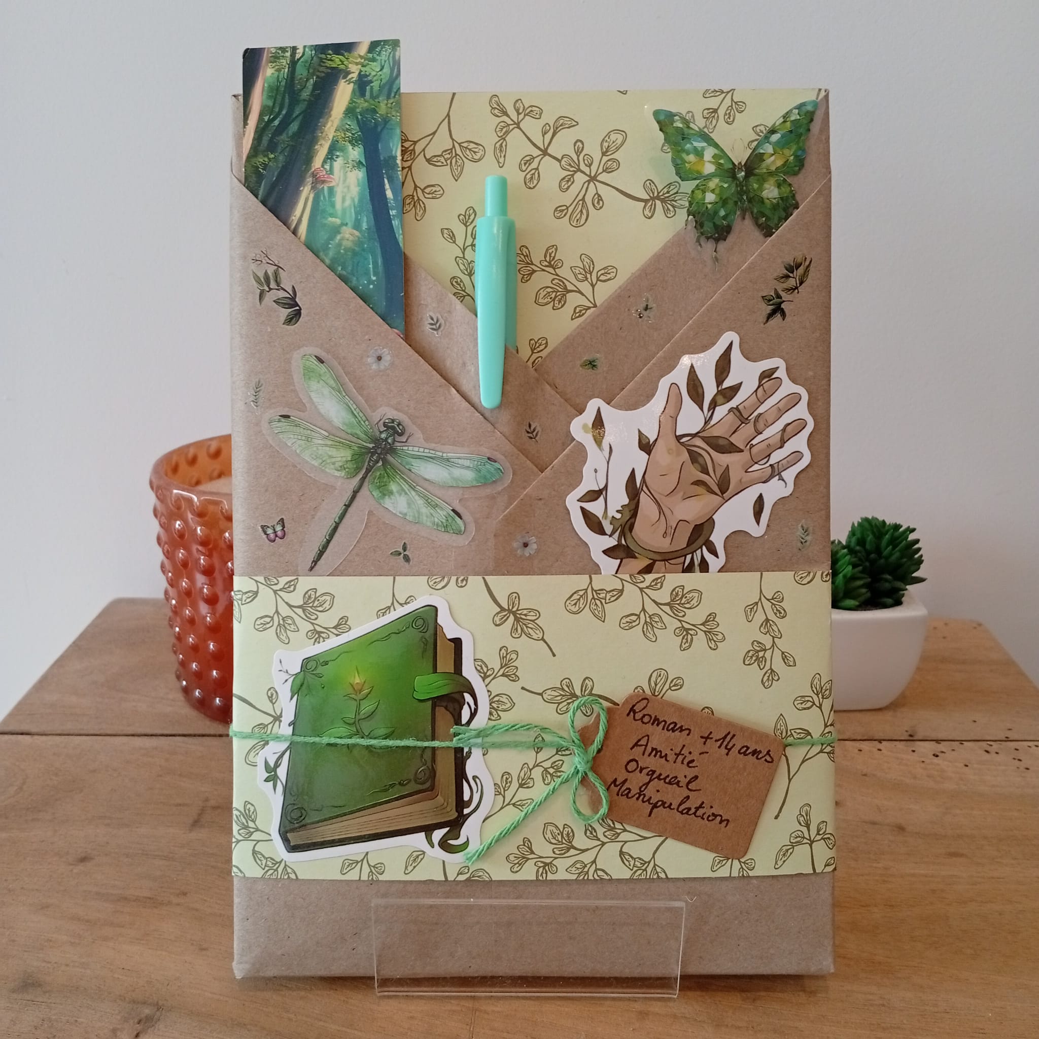 Un livre mystère format broché, son marque-page et ses accessoires livresques (stylo, crayon, surligneur, stickers, onglets adhésifs, carte… Variable selon la box)