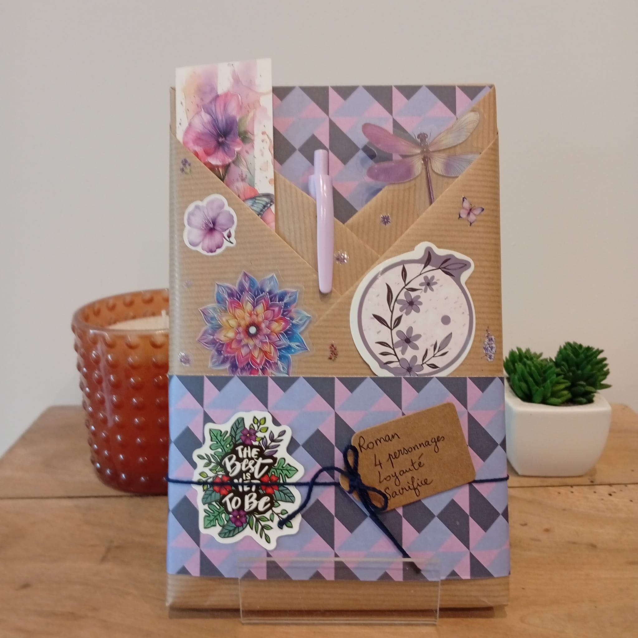Un livre mystère format broché, son marque-page et ses accessoires livresques (stylo, crayon, surligneur, stickers, onglets adhésifs, carte… Variable selon la box)