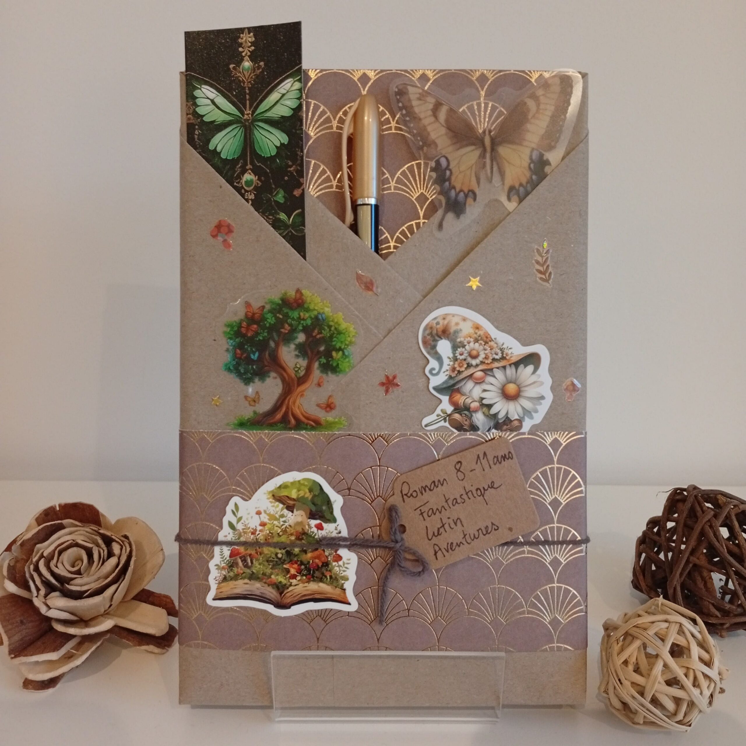 Un livre mystère format broché, son marque-page et ses accessoires livresques (stylo, crayon, surligneur, stickers, onglets adhésifs, carte… Variable selon la box)