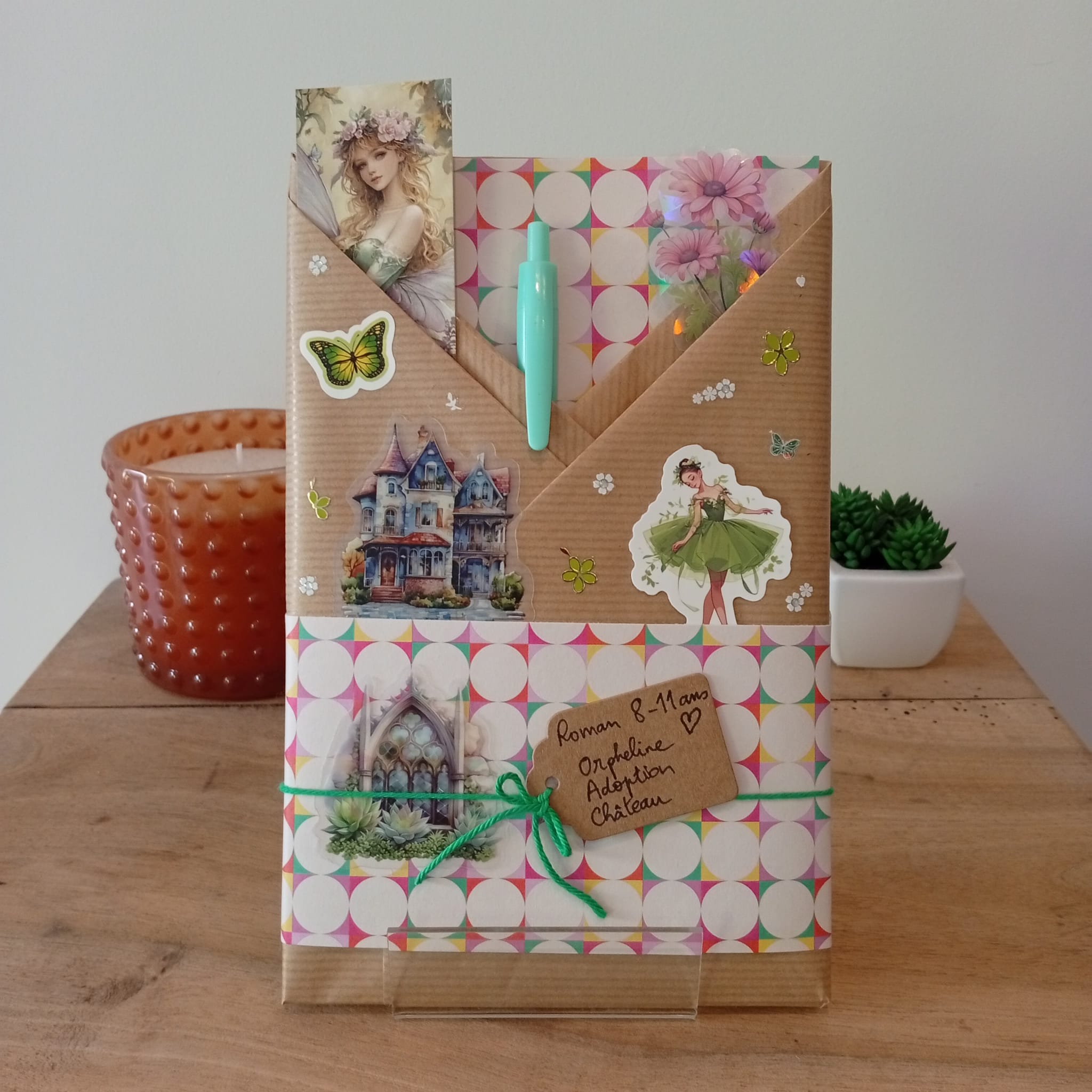 Un livre mystère, son marque-page et ses accessoires livresques