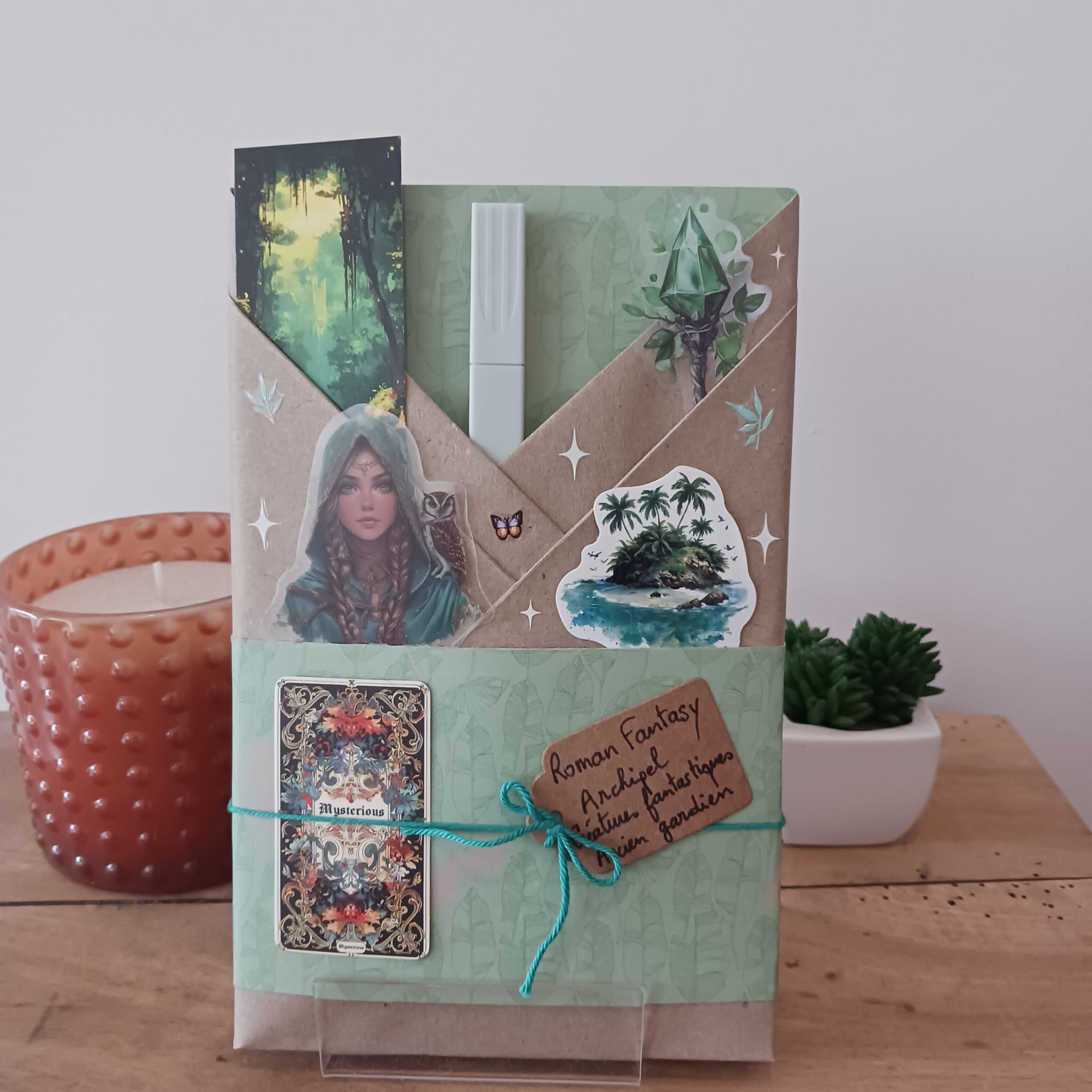 Un livre mystère format broché, son marque-page et ses accessoires livresques (stylo, crayon, surligneur, stickers, onglets adhésifs, carte… Variable selon la box)