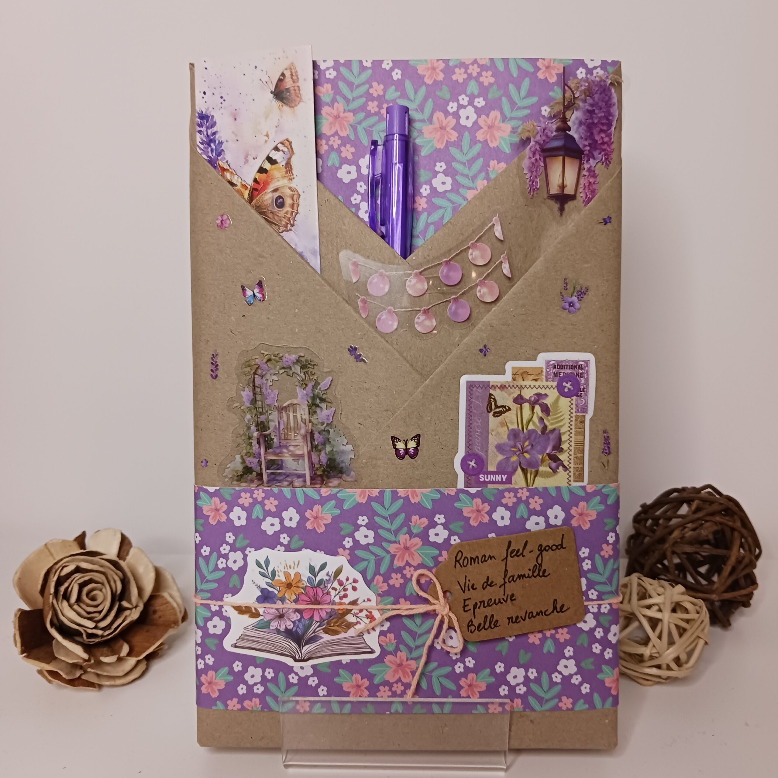 Un livre mystère format broché, son marque-page et ses accessoires livresques (stylo, crayon, surligneur, stickers, onglets adhésifs, carte… Variable selon la box)