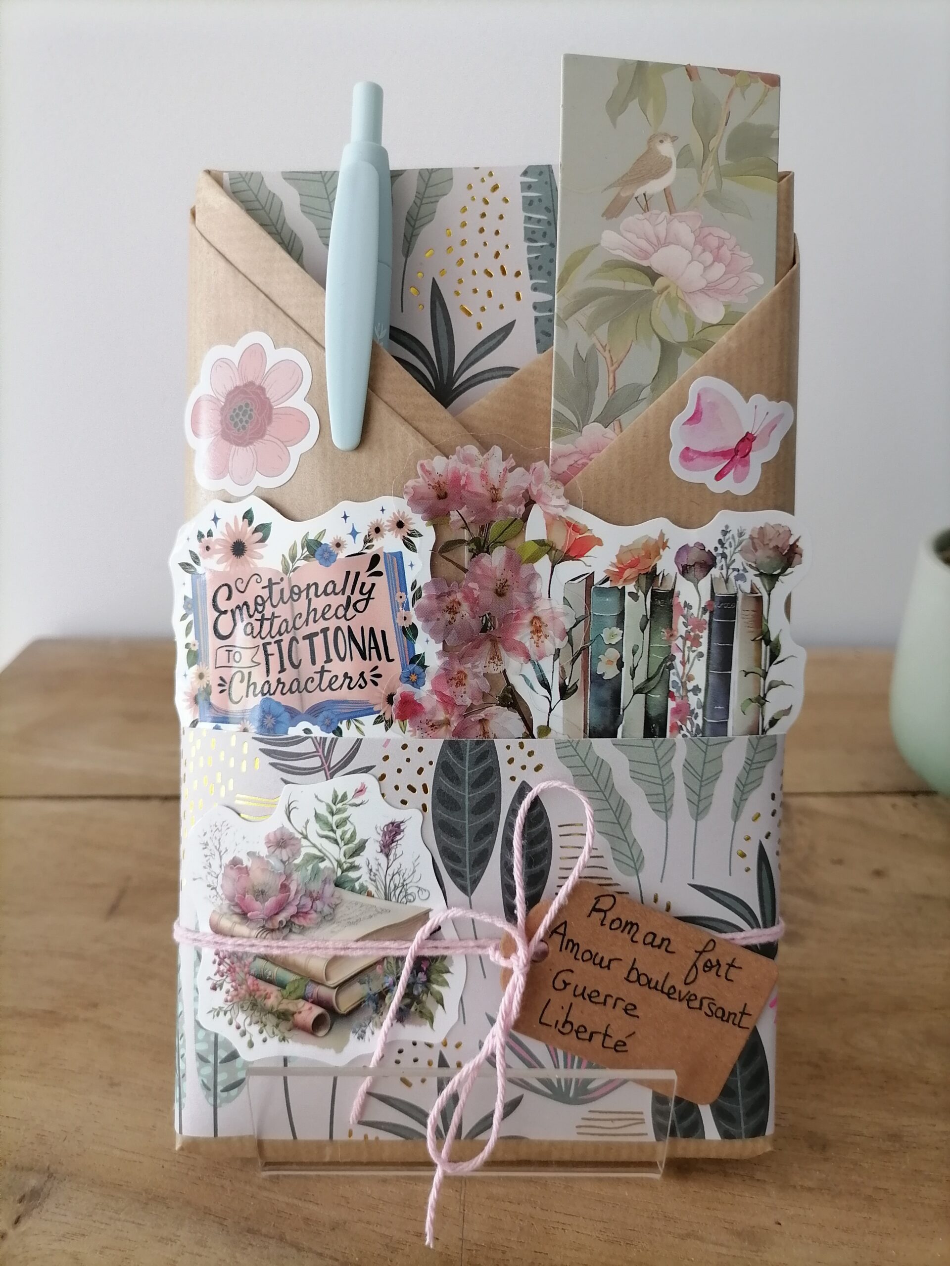 Box mystère : Un livre mystère format poche, son marque-page et ses accessoires livresques (stylo, crayon, surligneur, stickers, onglets adhésifs, carte… Variable selon la box)