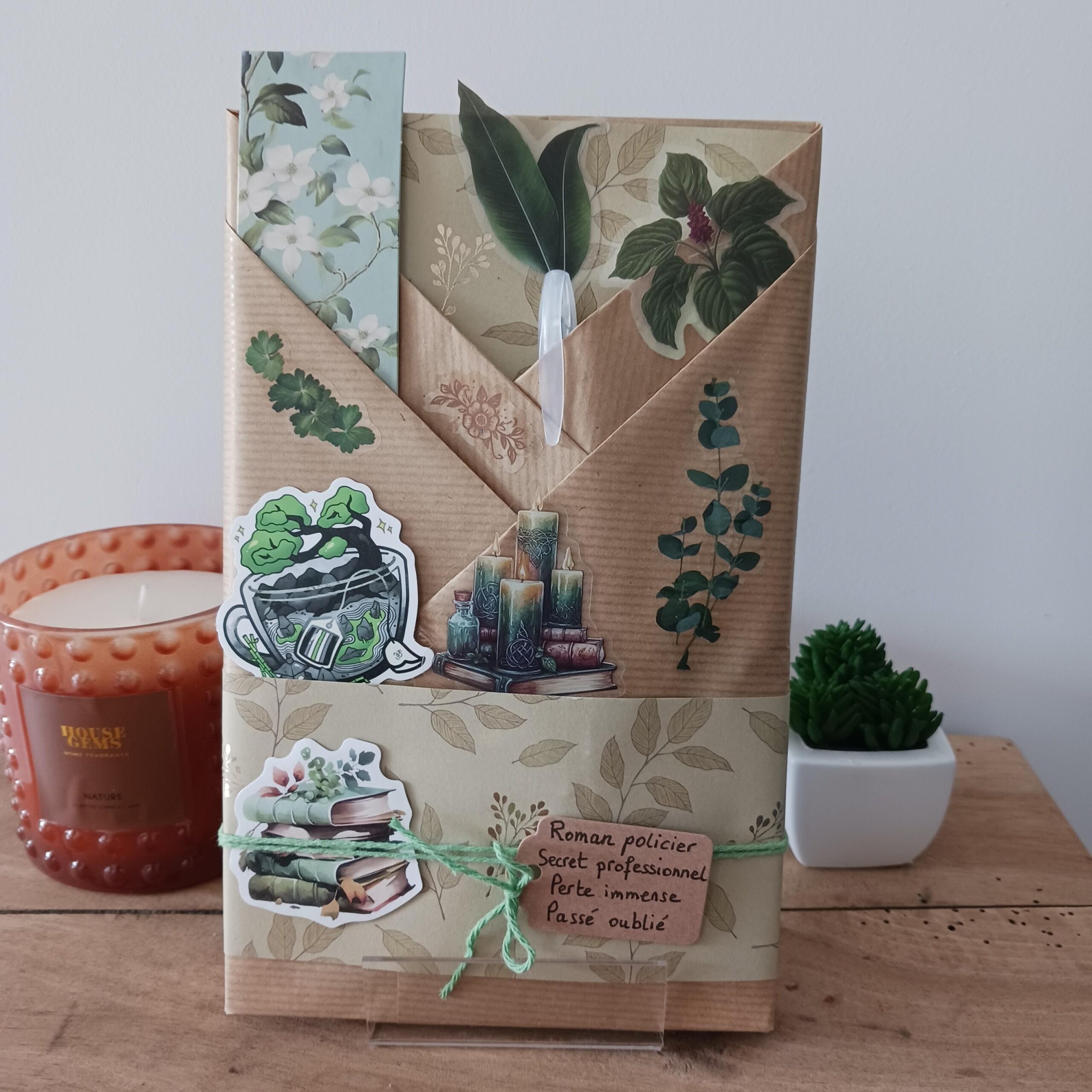 Un livre mystère format broché, son marque-page et ses accessoires livresques (stylo, crayon, surligneur, stickers, onglets adhésifs, carte… Variable selon la box)