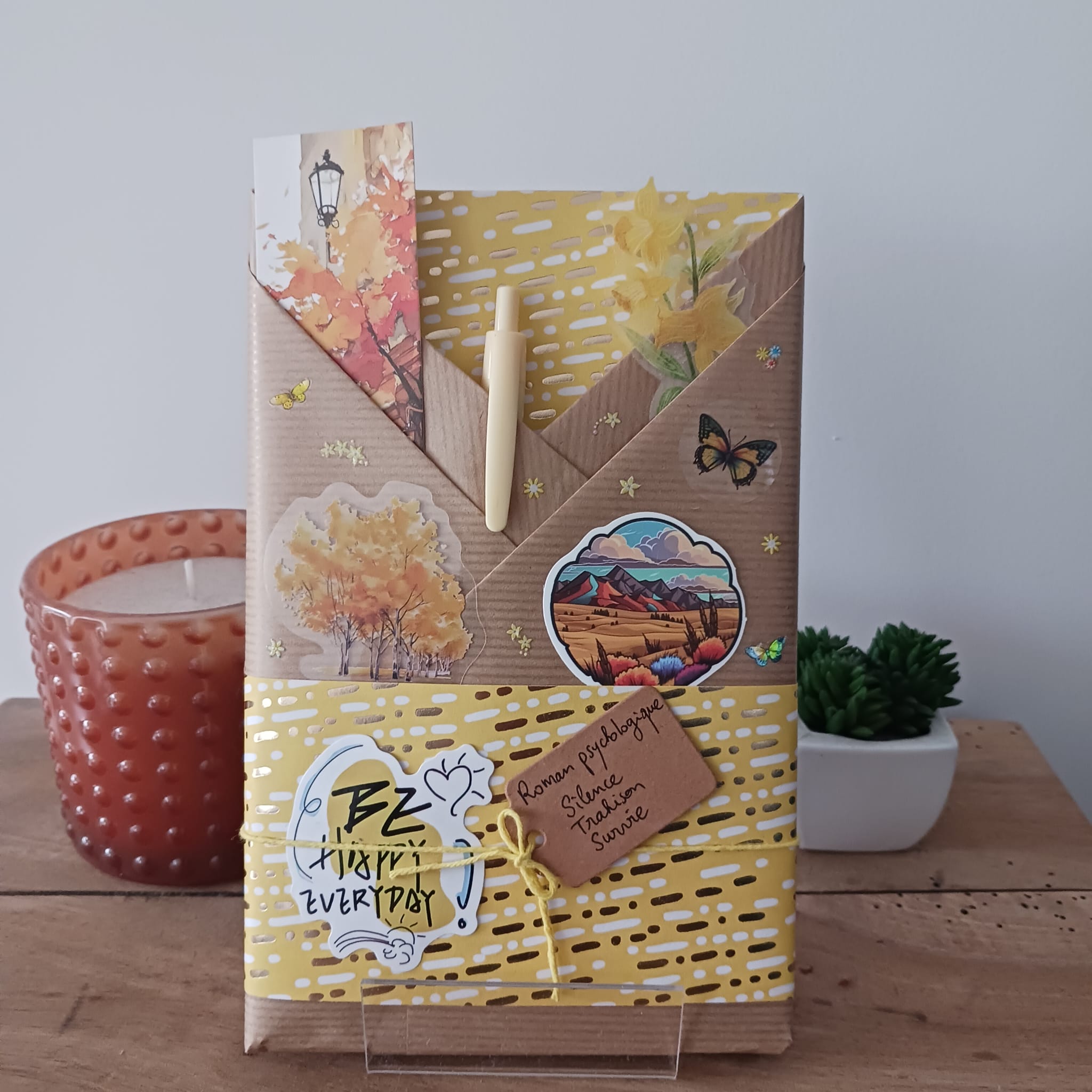 Un livre mystère format broché, son marque-page et ses accessoires livresques (stylo, crayon, surligneur, stickers, onglets adhésifs, carte… Variable selon la box)