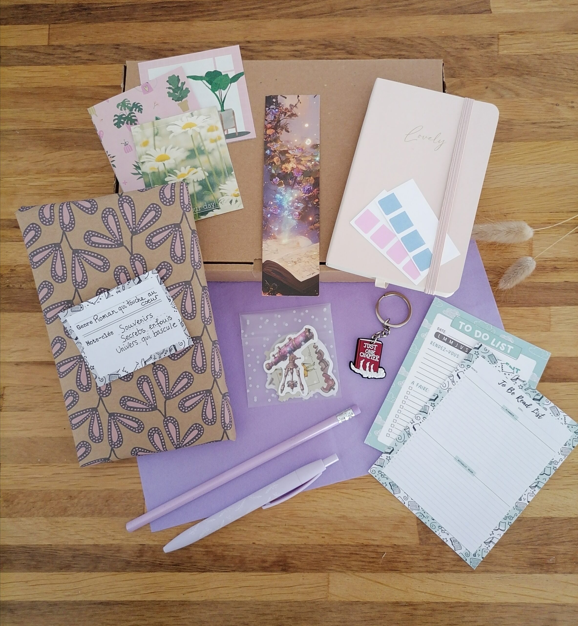 – Des accessoires livresques (stylo, crayon, surligneur, stickers, onglets adhésifs, cartes … Variable selon la box)