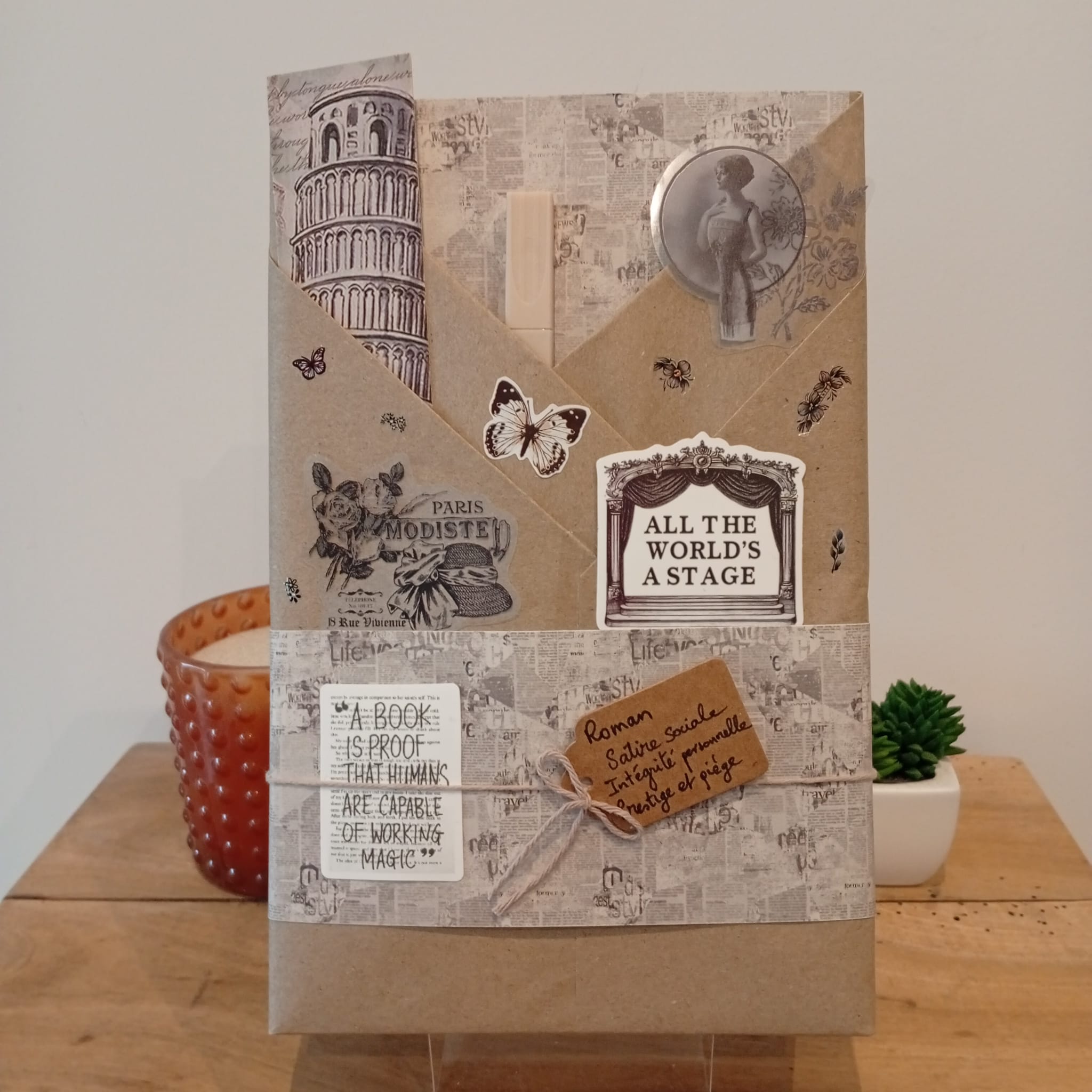 Un livre mystère format broché, son marque-page et ses accessoires livresques (stylo, crayon, surligneur, stickers, onglets adhésifs, carte… Variable selon la box)