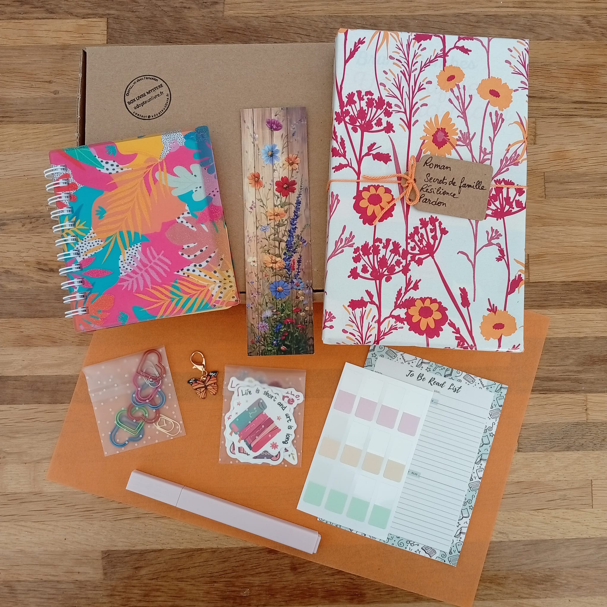 – Des accessoires livresques (stylo, crayon, surligneur, stickers, onglets adhésifs, cartes … Variable selon la box)