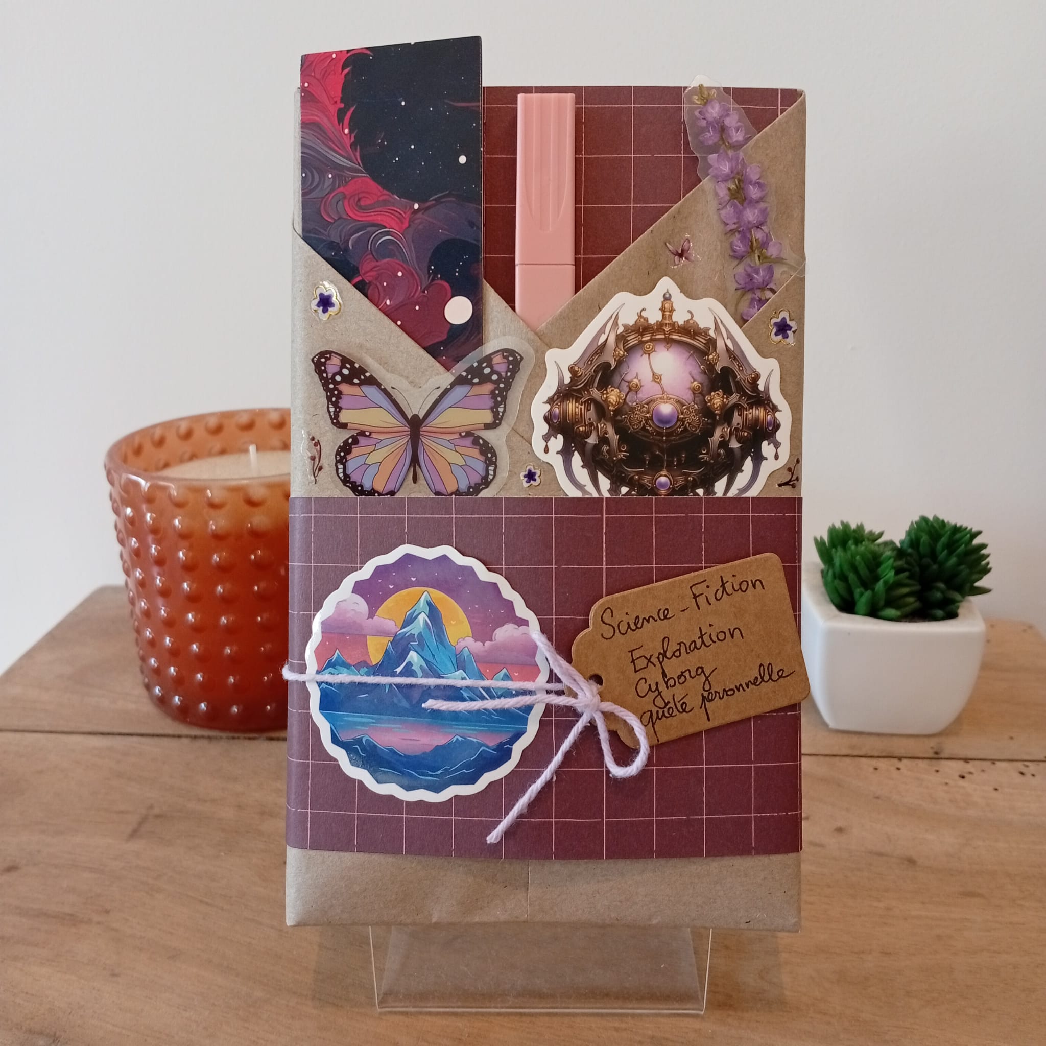 Un livre mystère format poche, son marque-page et ses accessoires livresques (stylo, crayon, surligneur, stickers, onglets adhésifs, carte… Variable selon la box)