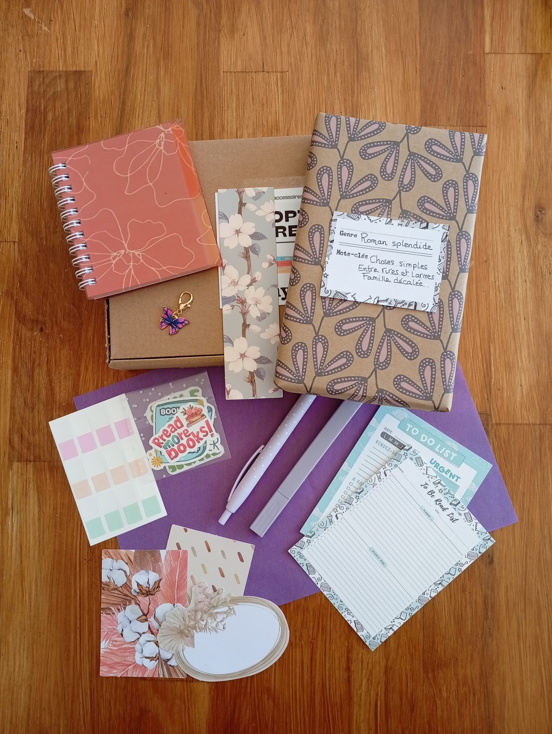 – Des accessoires livresques (stylo, crayon, surligneur, stickers, onglets adhésifs, cartes … Variable selon la box)