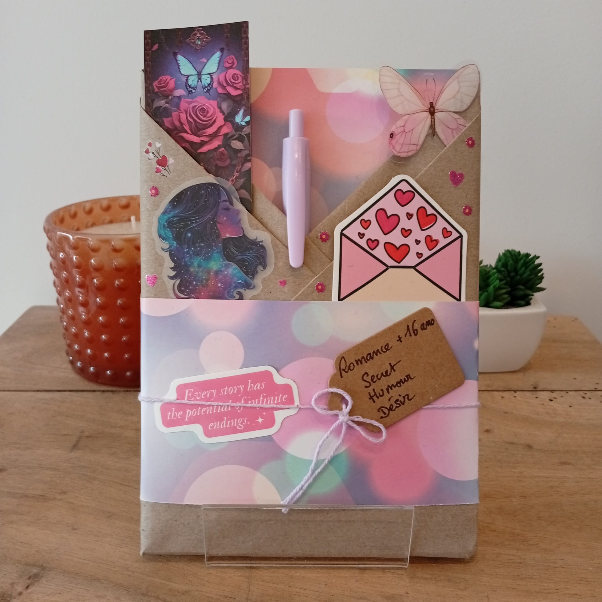 Un livre mystère, son marque-page et ses accessoires livresques