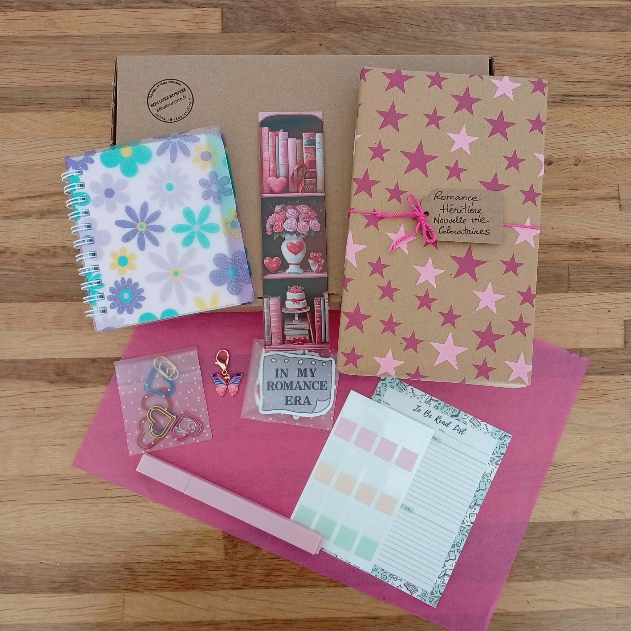 – Des accessoires livresques (stylo, crayon, surligneur, stickers, onglets adhésifs, cartes … Variable selon la box)