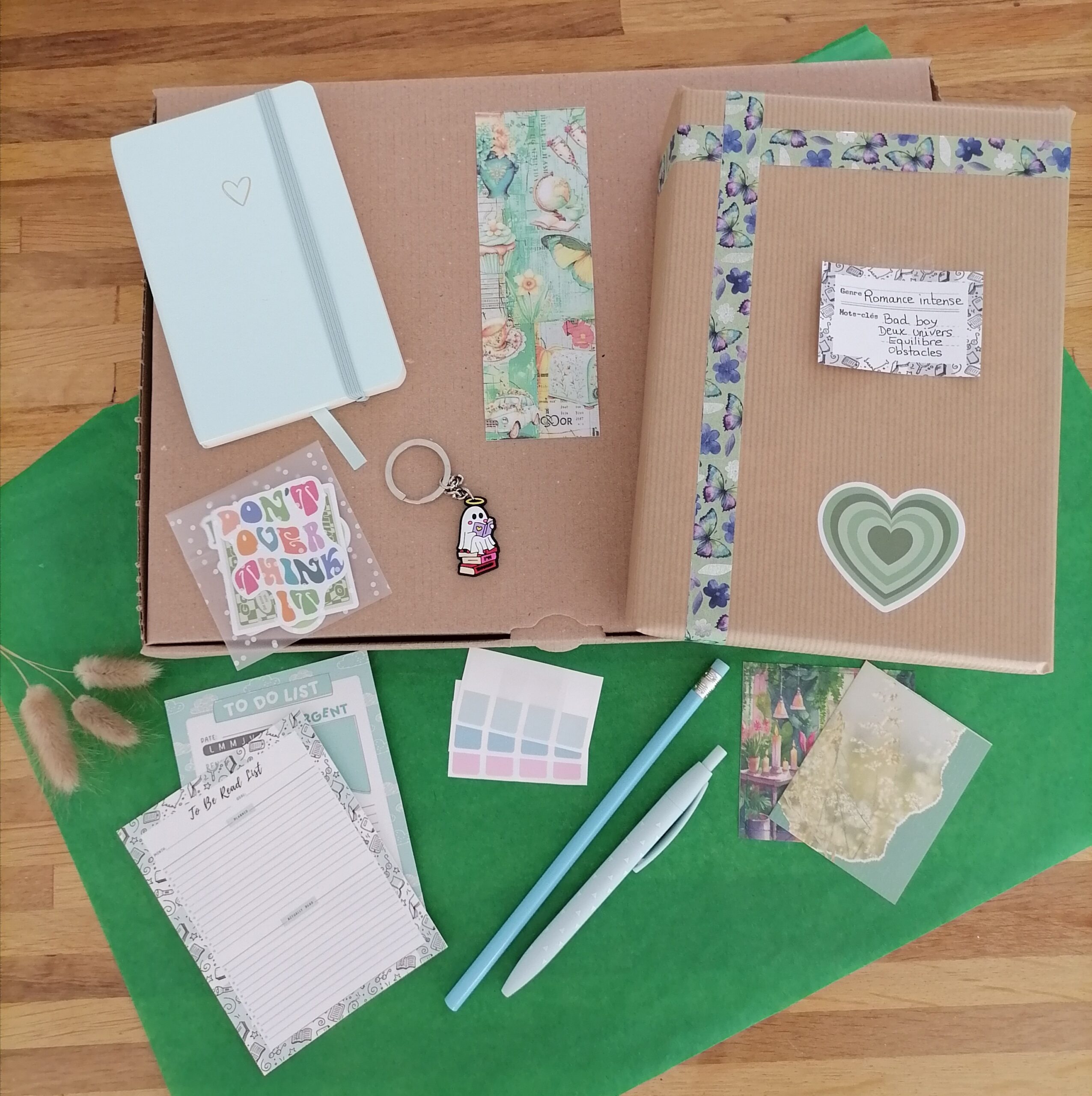 – Des accessoires livresques (stylo, crayon, surligneur, stickers, onglets adhésifs, cartes … Variable selon la box)