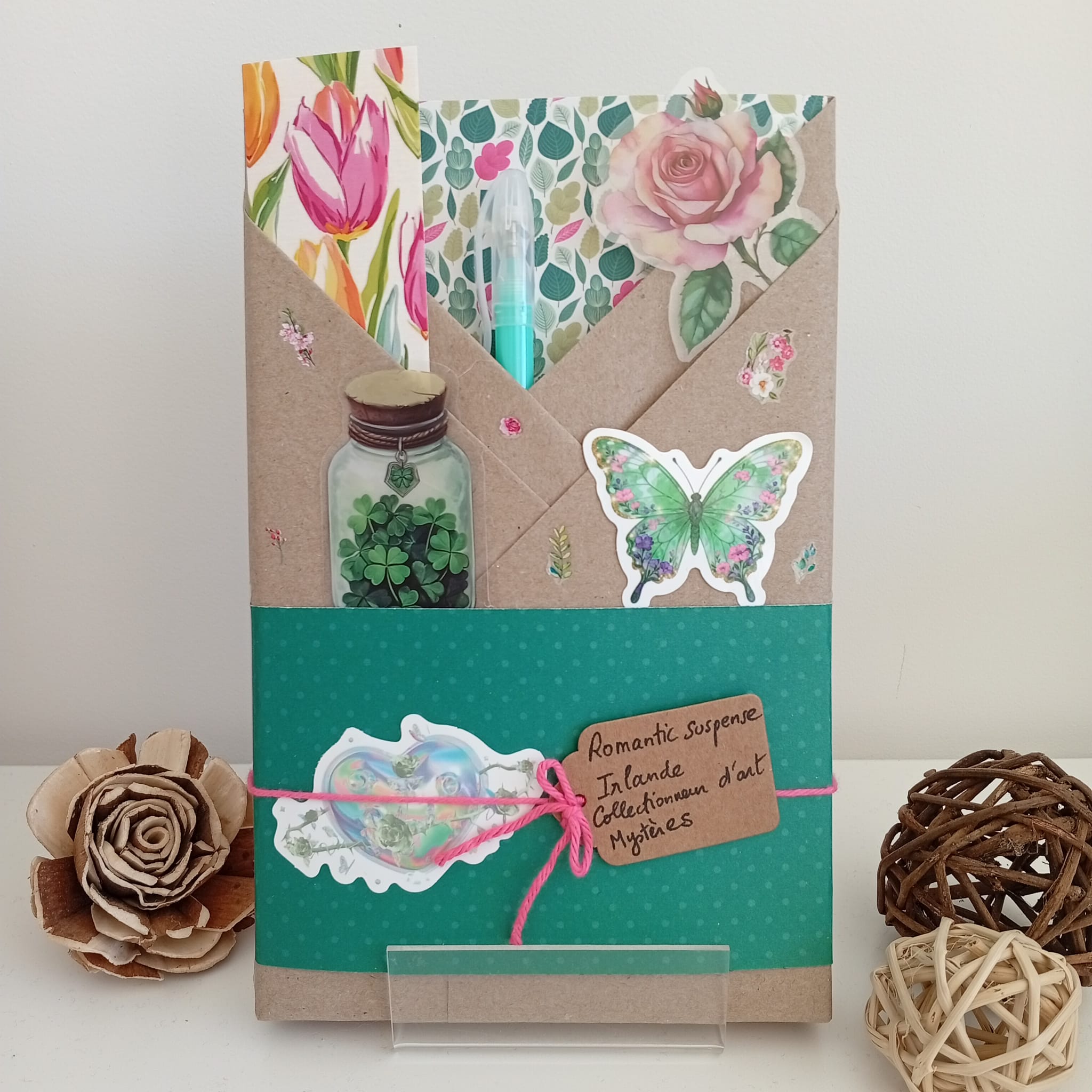 Un livre mystère format broché, son marque-page et ses accessoires livresques (stylo, crayon, surligneur, stickers, onglets adhésifs, carte… Variable selon la box)