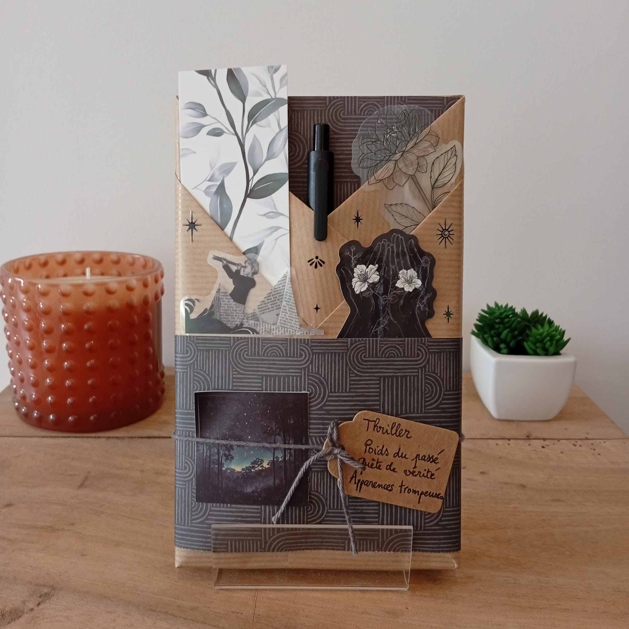 Un livre mystère format poche, son marque-page et ses accessoires livresques (stylo, crayon, surligneur, stickers, onglets adhésifs, carte… Variable selon la box)