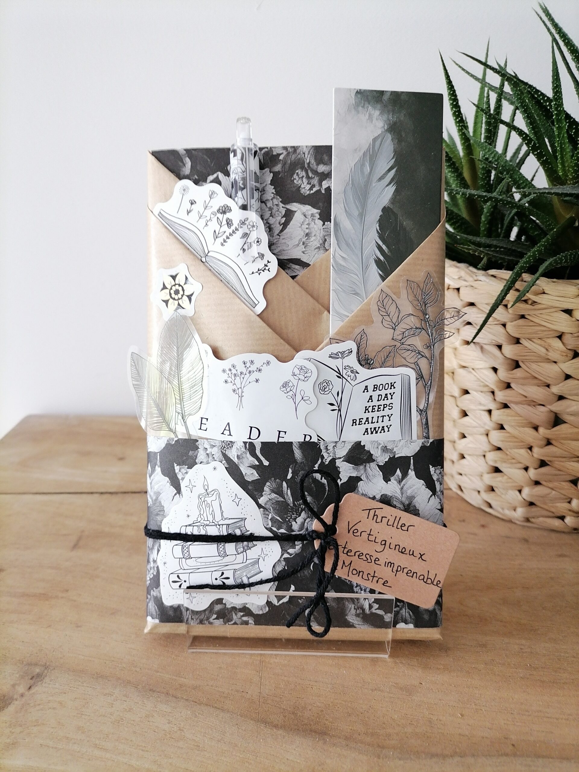 Box mystère : Un livre mystère format poche, son marque-page et ses accessoires livresques (stylo, crayon, surligneur, stickers, onglets adhésifs, carte… Variable selon la box)
